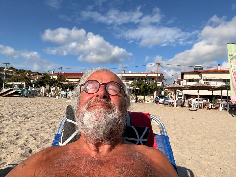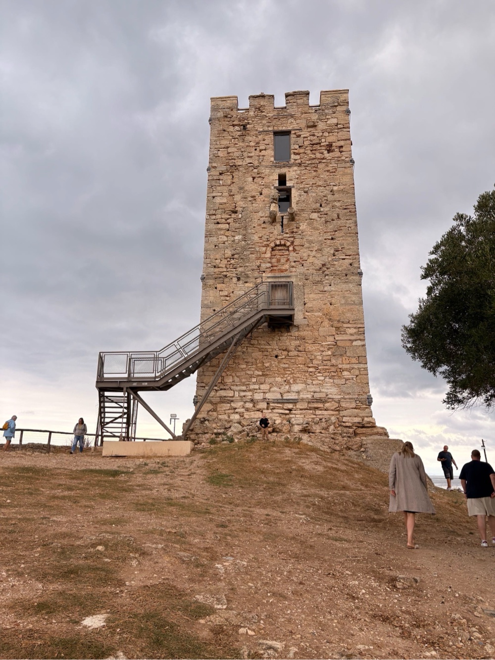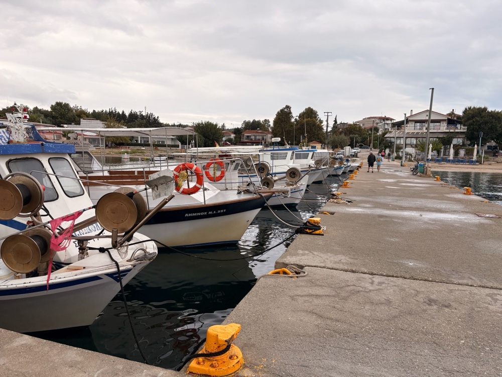 Der Tag begann trübe, so liessen wir uns wieder Zeit beim Frühstück und fuhren dann nach Nea Fokea und liefen durch das Dorf. Am zentralen Platz saßen ein paar Männer, aber sonst war es sehr ruhig. Auch am Strand und an dem byzantinischen Turm ließen sich keine Touristen sehen.