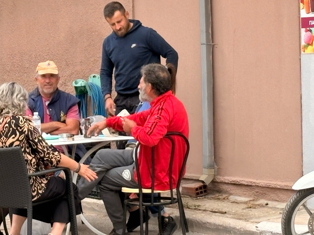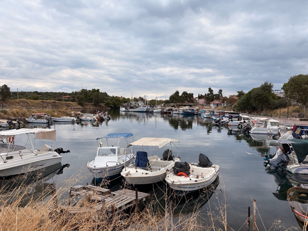 Wir fuhren dann weiter nach Neo Potidea, wo ein schmaler Kanal durch die Halbinsel geht und so die Durchfahrt zum 2. Finger ermöglicht. In dem Dorf kehrten wir dann ein und tranken Kaffee. Das Kafenion entpuppte sich als Spielhölle. Viele Bildschirme und noch mehr Kästen mit Spielzetteln fielen ins Auge. Und auch zu der frühen Stunde waren viele Männer da und versuchten ihr Glück.